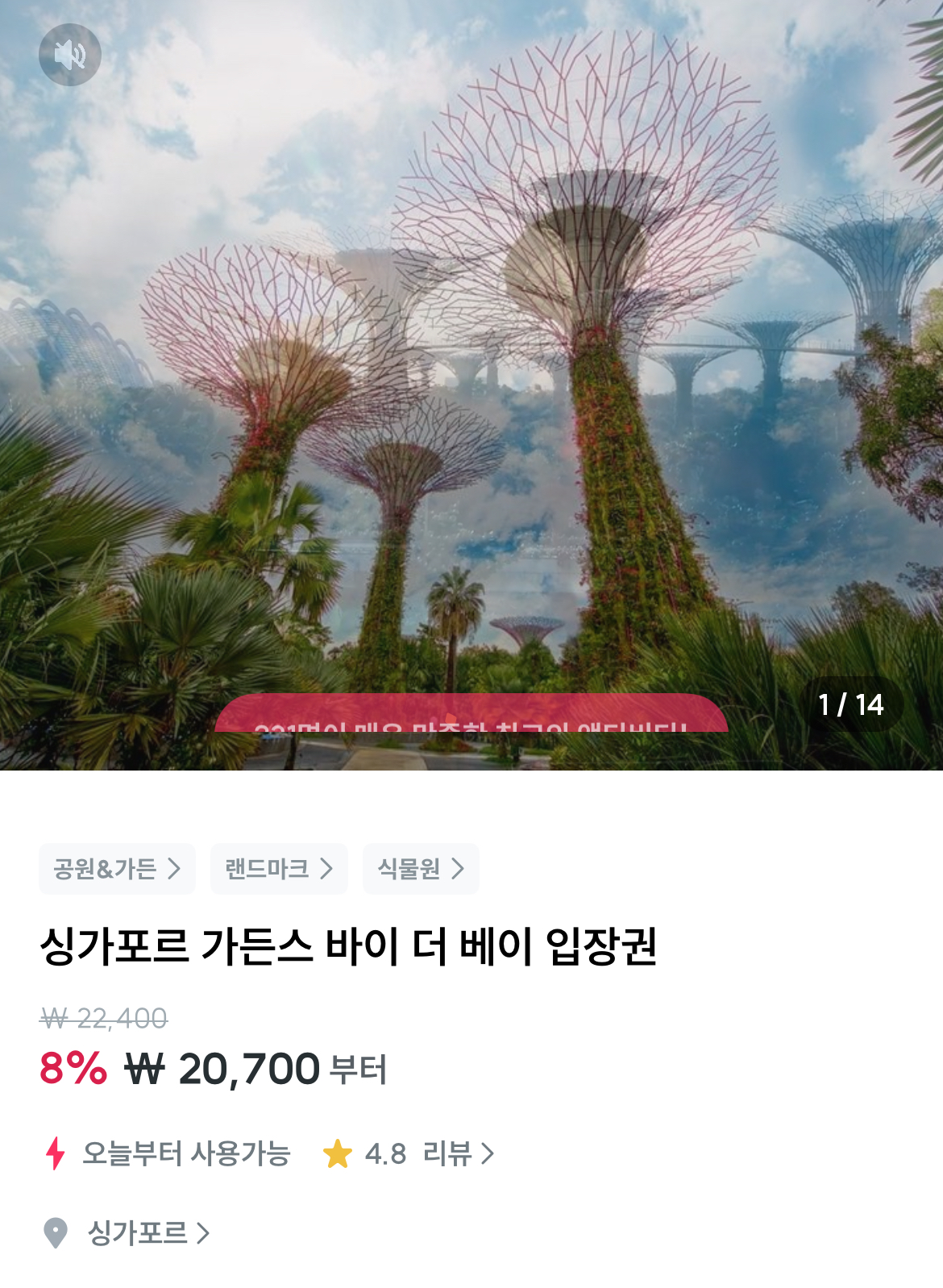 클라우드 포레스트 + 플라워돔 티켓 : 성인 1인 30,900원
